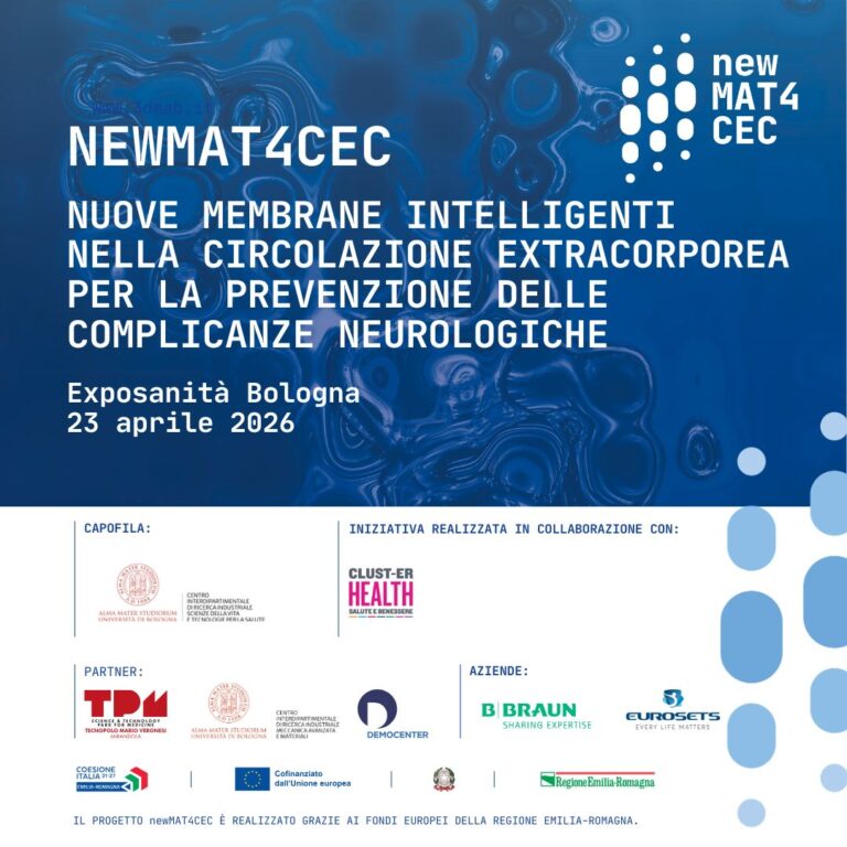 Prevenire le complicanze neurologiche durante la circolazione extracorporea. Il progetto newMAT4CEC esplora materiali avanzati e funzionalizzati per ridurre il rischio di eventi avversi neurologici durante le procedure più critiche. Vieni a trovarci al nostro desk al Padiglione 32 – Stand B8 per parlarne insieme a noi oppure partecipa al workshop “newMAT4CEC – Nuove membrane intelligenti nella circolazione extracorporea per